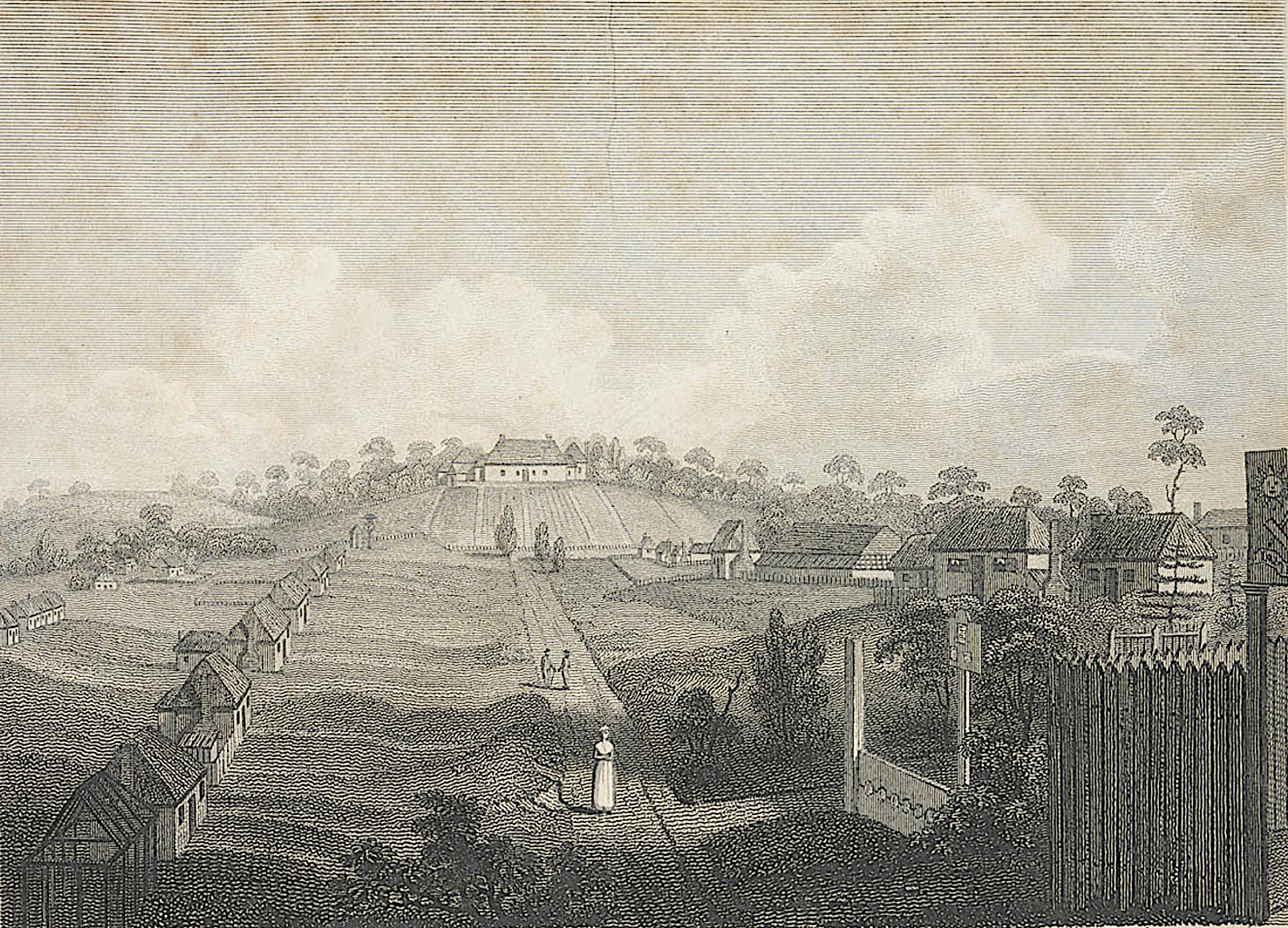 CLICK IMAGE TO ENLARGE. James Heath, “A View of the Governor’s House at Rose hill in the Township of Parramatta,” in David Collins, An Account of the English Colony in New South Wales, Vol. 1, (London: T. Cadell, jun. and W. Davies in the Strand, 1798). Q79/60 v.v. 1 / FL3729321. Courtesy of Mitchell Library, State Library of New South Wales.