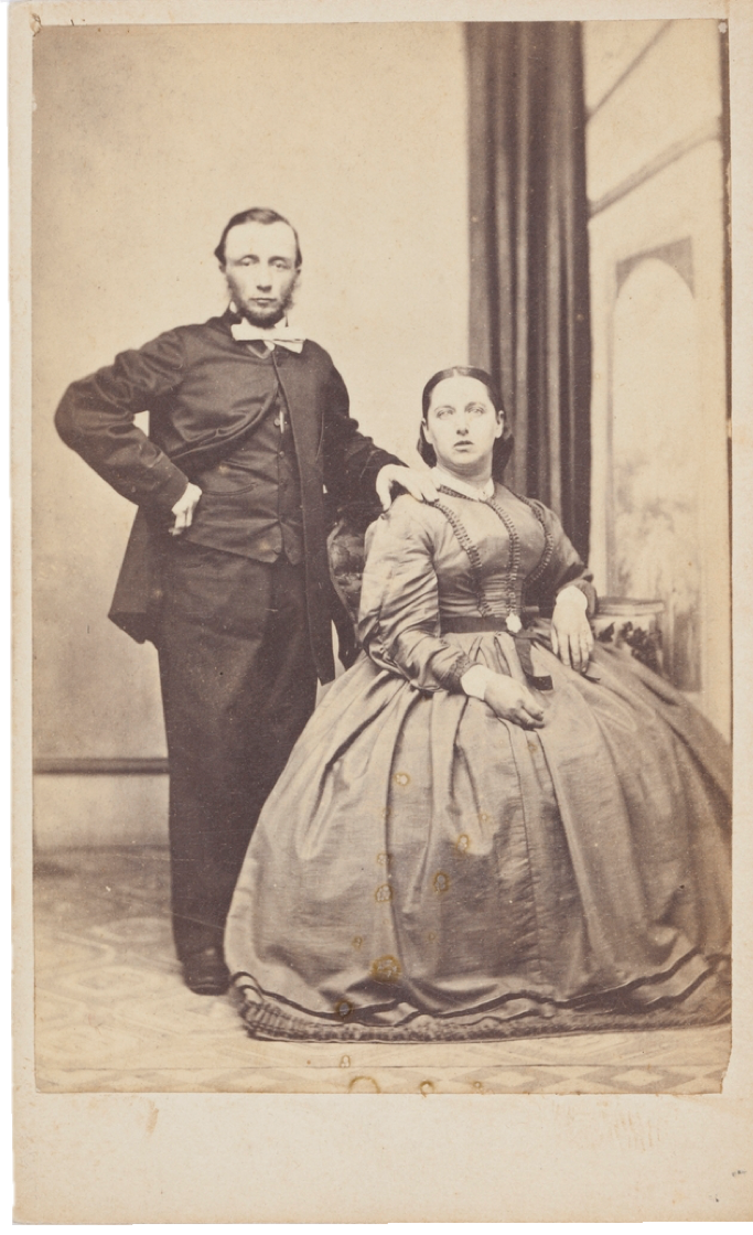 CLICK IMAGE TO ENLARGE. John J. Beukers and his wife Sarah Lester Beukers (née Sarah Lester Clarke), daughter of Reverend William Clarke, AM, of Somersetshire, England. The Beukers were printers of nineteenth-century Parramatta. Henry William Burgin – studio portraits of Parramatta residents, ca. 1860-1872.Courtesy of Mitchell Library, State Library of New South Wales, PXA 1036 / FL3220219