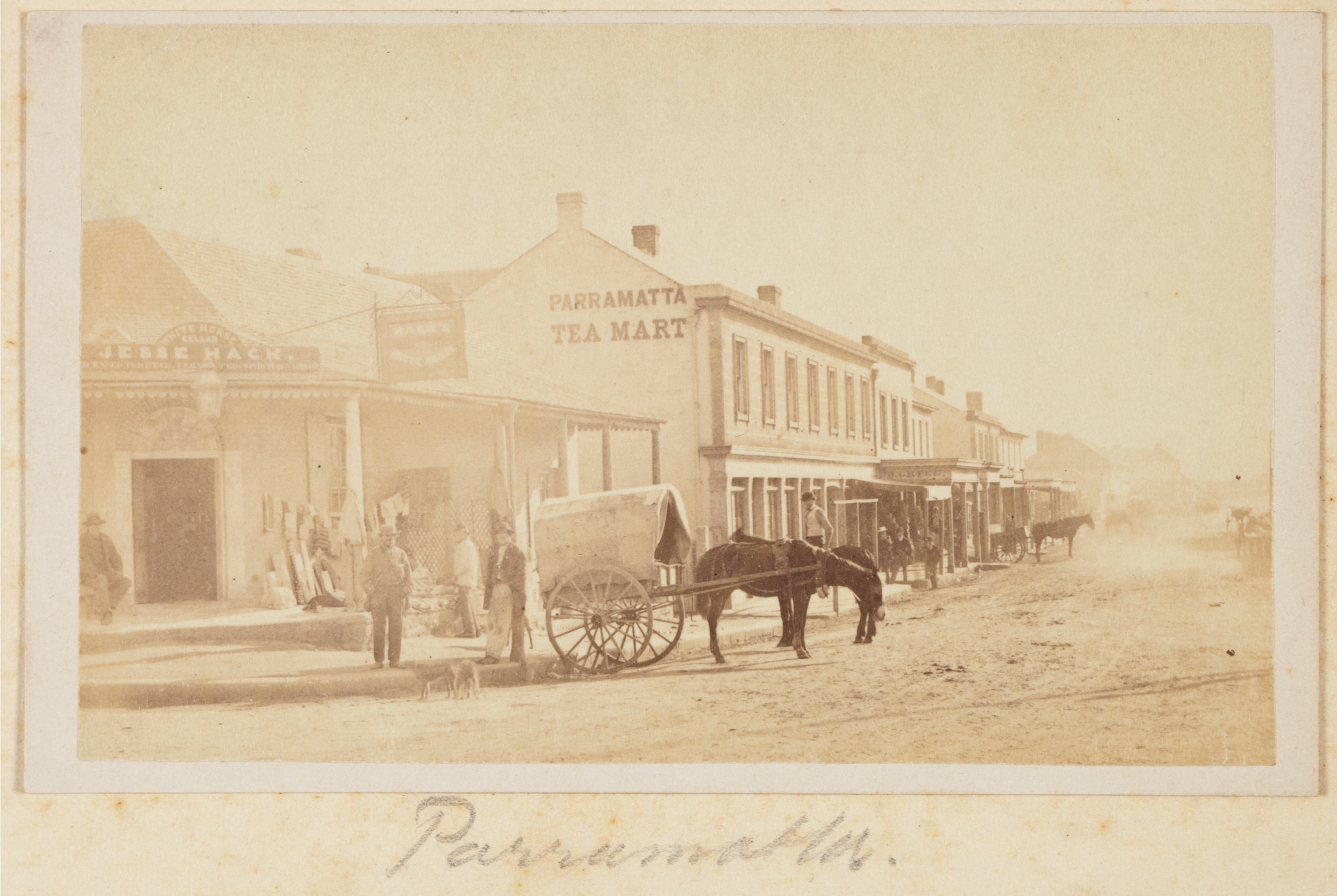 CLICK IMAGE TO ENLARGE. American & Australasian Photographic Company, “Parramatta [street scene] [featuring Jesse Hack’s White Horse Hotel], in Album of Photographs of Sydney & Country New South Wales, (c. 1871), PXA 933 / FL1076032, Mitchell Library, State Library of New South Wales.
