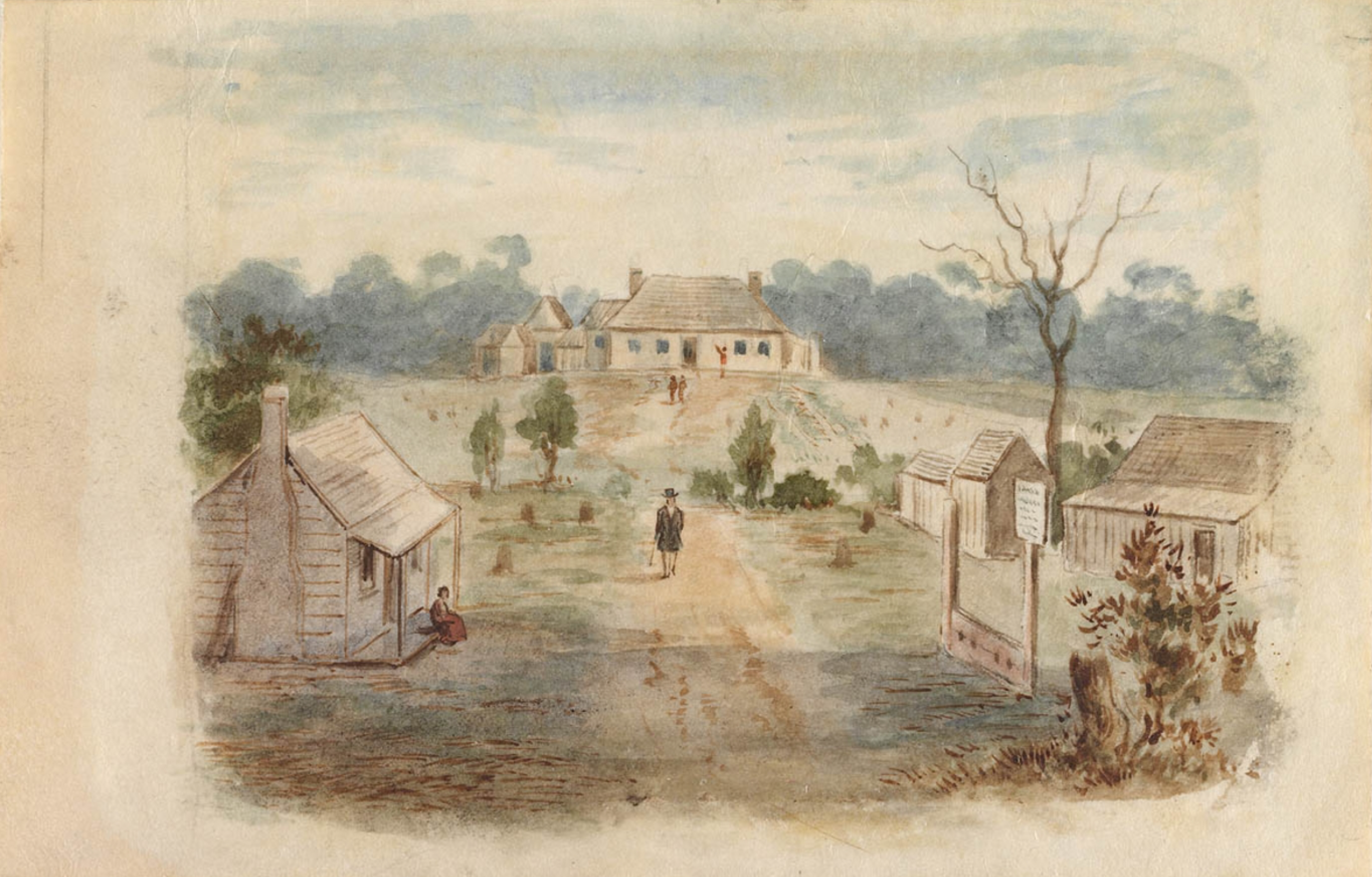 View of Governor’s House, Rosehill, (c.1790) CLICK IMAGE TO ENLARGE. View of Governor’s House, Rosehill, (c.1790), DG SSV1B / 3 / FL3310916, Dixson Galleries, State Library of New South Wales.