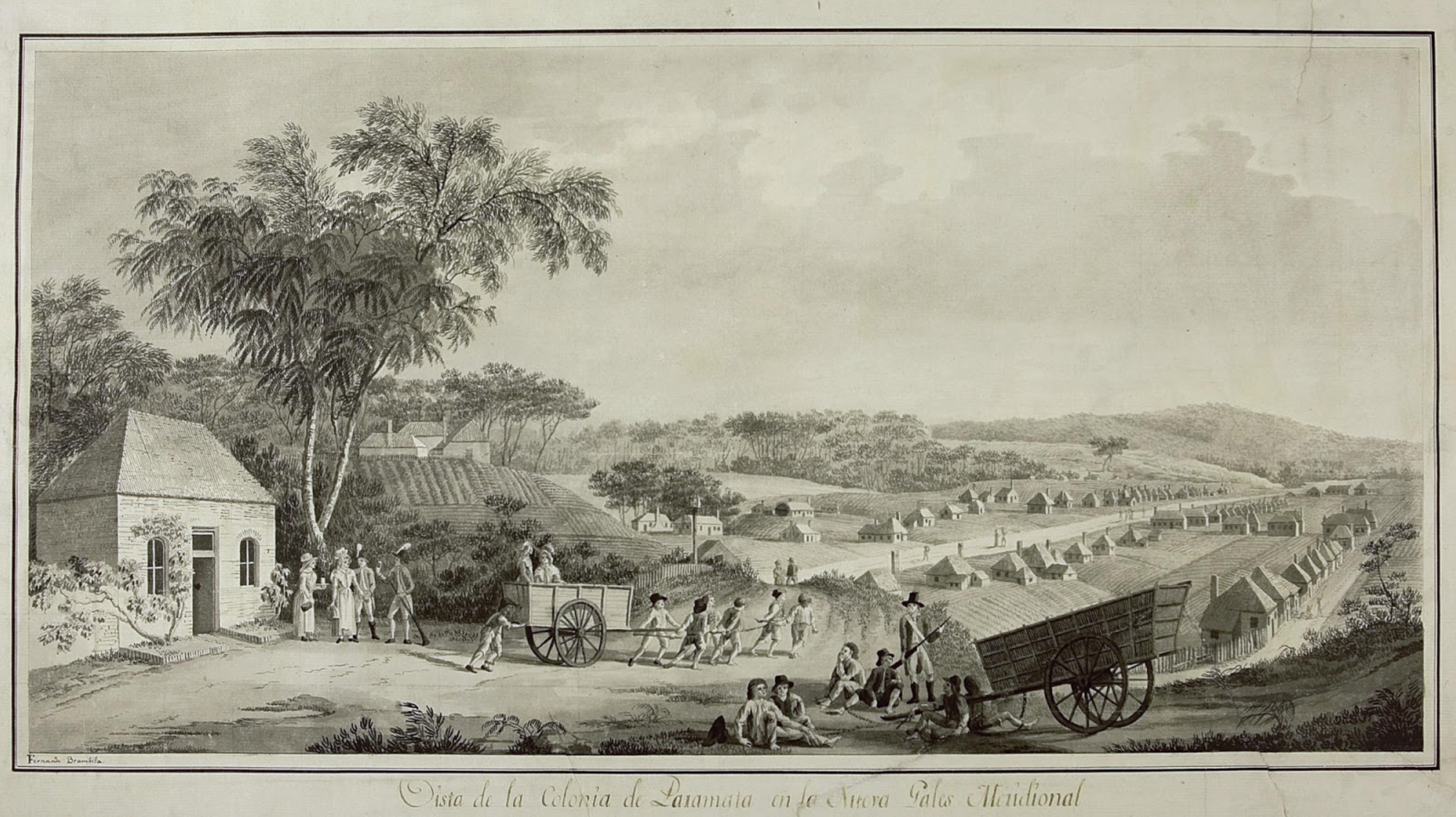 Vista de la Colonia de Paramata en la Nuova Gales Meridional [View of the Colony of Paramatta in New South Wales], by Fernando Brambila (1793)