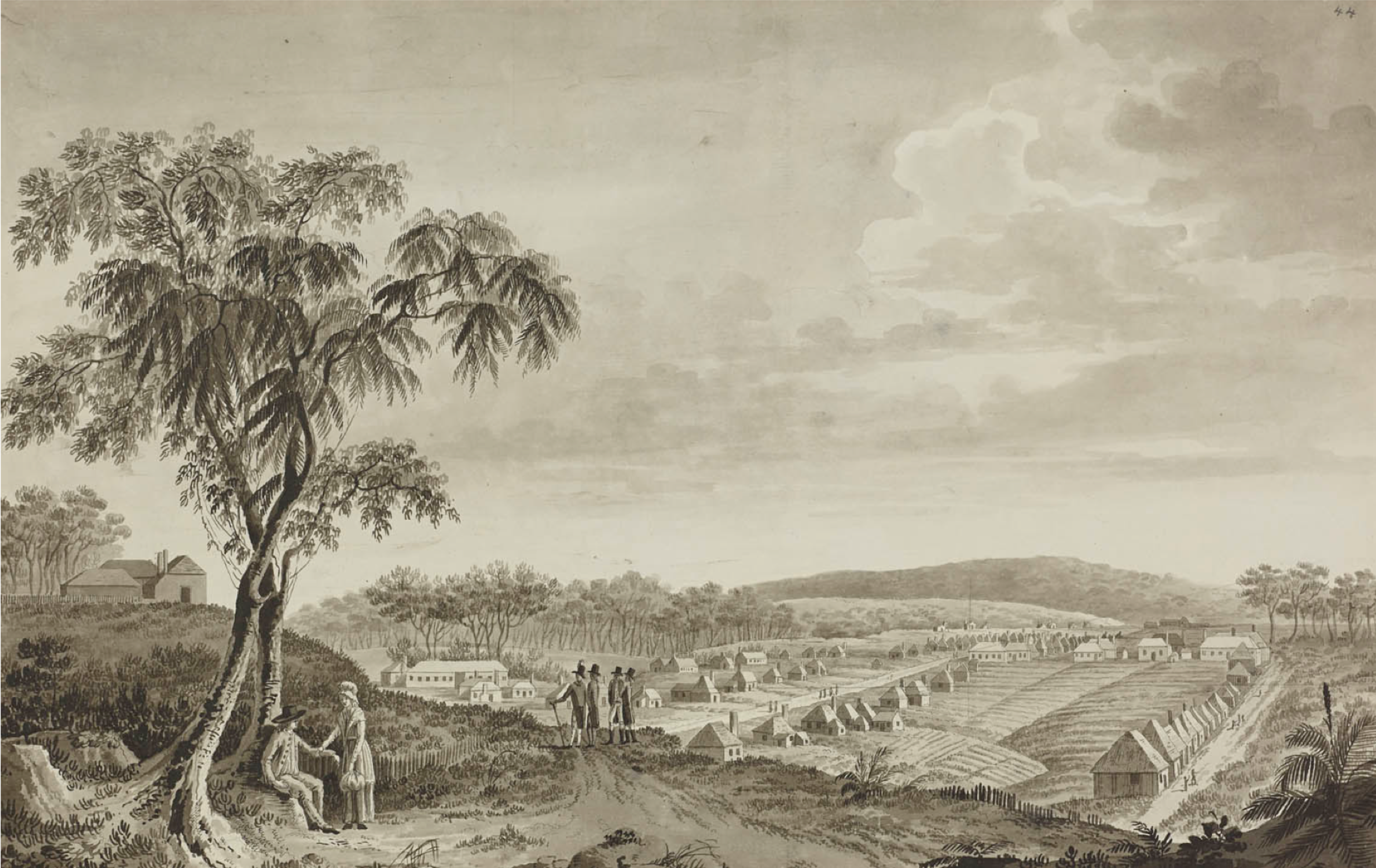 Sketch of Parramatta, April 1793, by Fernando Brambila CLICK IMAGE TO ENLARGE. Fernando Brambila, Sketch of Parramatta, April 1793, Map Library, MAPS T.TOP.124 SUPP F44. © British Library Board.
